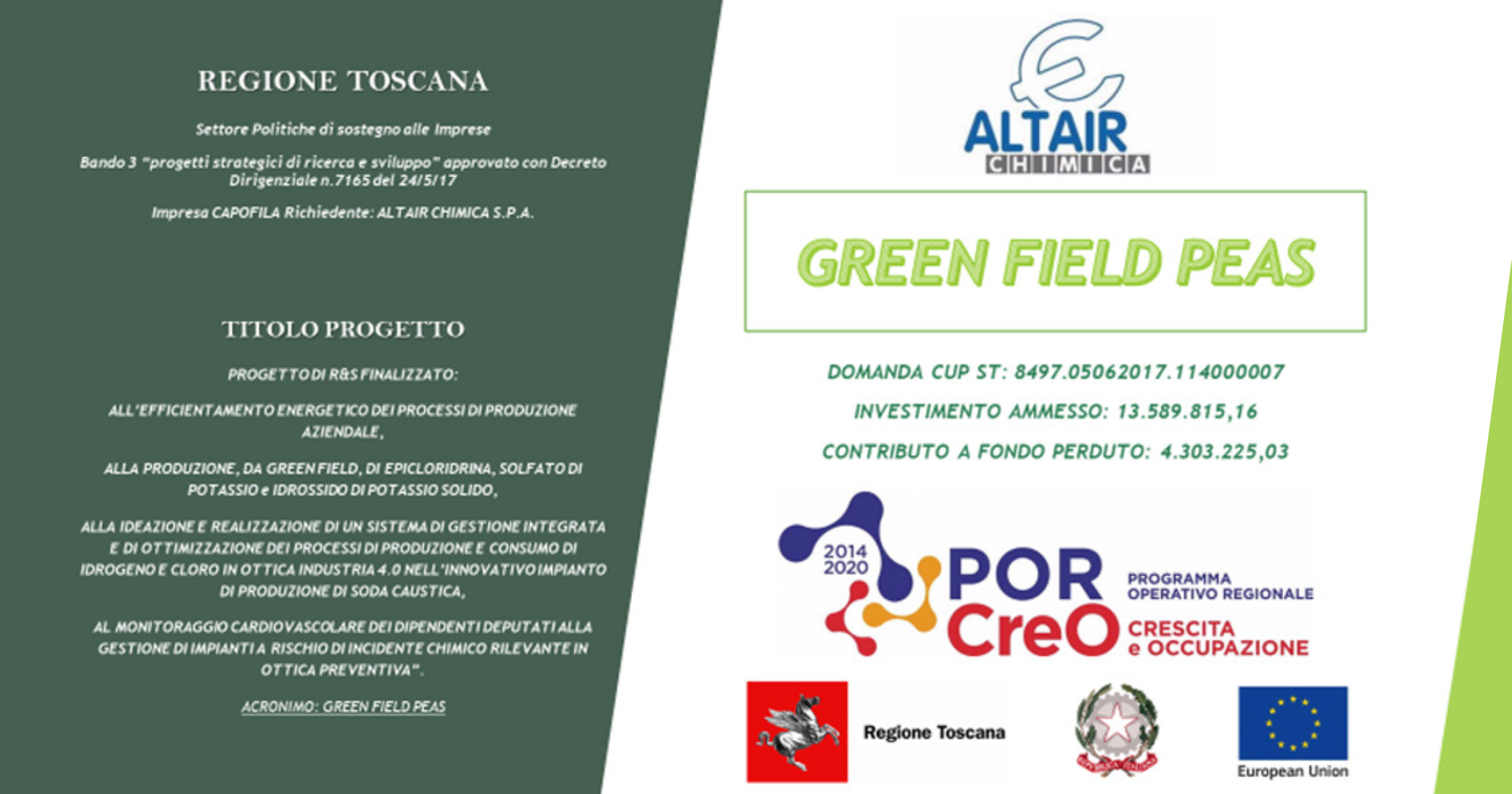 Il progetto GREEN FIELD PEAS, realizzato in collaborazione con il Consiglio Nazionale delle Ricerche, Istituto di Chimica dei Composti Organo-Metallici (CNR-ICCOM) di Firenze e con l’Università di Ingegneria Chimica di Pisa, è stato menzionato tra i progetti di successo di CNR-ICCOM.