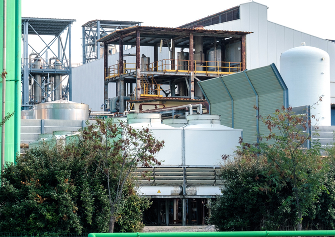 Per diminuire i consumi idrici dell’impianto di elettrolisi a membrane, sono state installate torri evaporative in grado di dissipare il calore e raffreddare l’acqua.